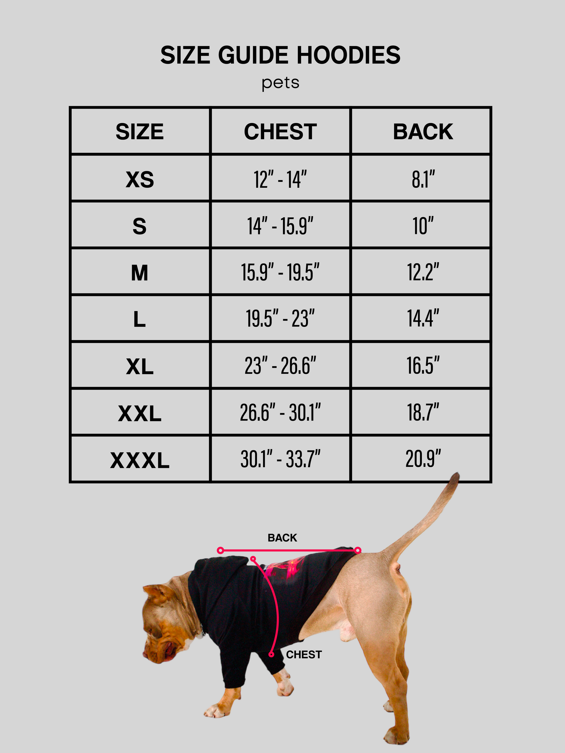 - In the last pic, you’ll find the size guide or click here. (Always measure your pet to choose the perfect size).